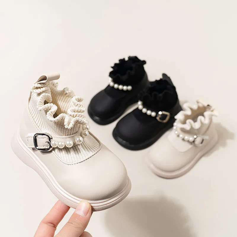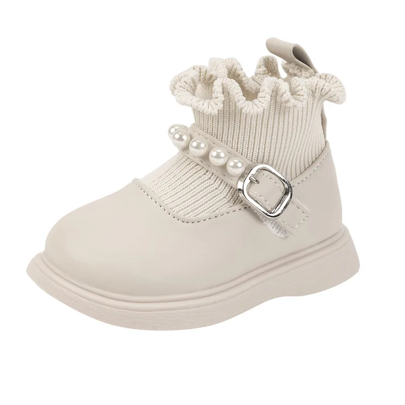 Baby & Toddler’s Girls’ Shoes, Code 3326, with a sock-like stretchy design and delicate pearls on the strap, showcase a combination of comfort and elegance. The upper is made of durable microfiber leather, a blend of nylon and polyester, and the PU lining provides a soft comfort for the child’s foot. The non-slip rubber sole ensures safety while walking. The Velcro closure makes it easier for the child to use the shoes. This model is very suitable for parties, children’s gatherings, or even a chic everyday style, creating a unique and distinctive look.