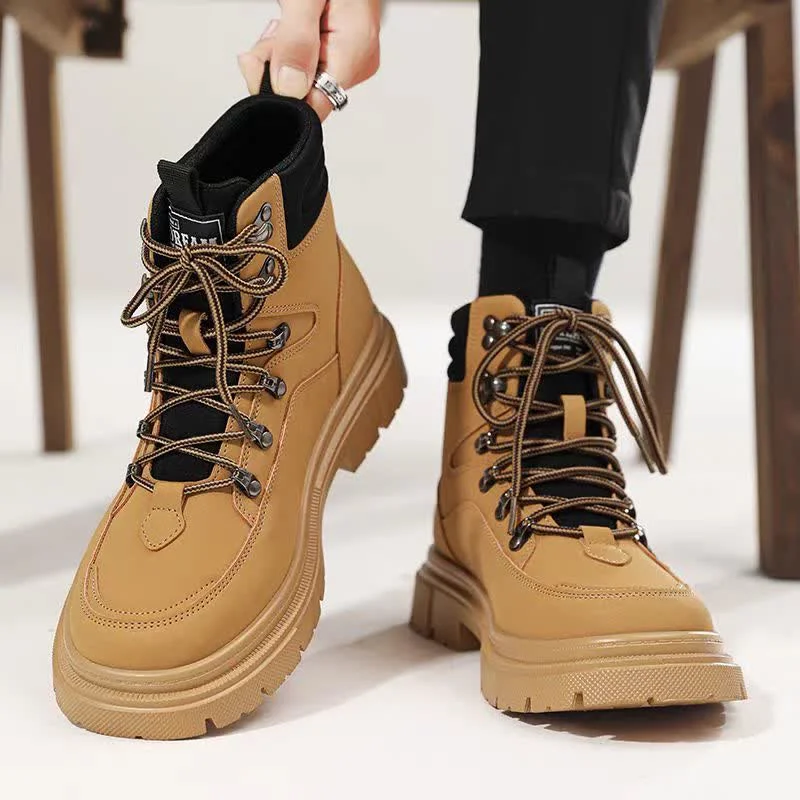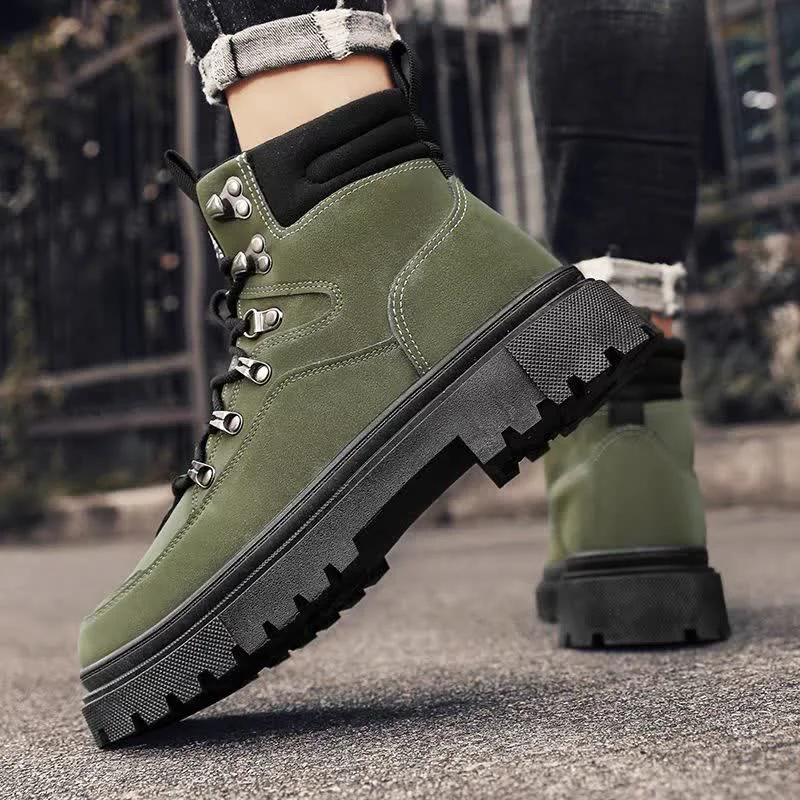 Men’s boots, code 1700, are designed and produced in three colors: black, mustard, and jade green. The upper material of this product is made from high-quality synthetic leather, and the interior is crafted from fabric. The sole of this shoe is made of rubber and features grooves and treads to prevent slipping and injury on slick surfaces. This stylish ankle boot is fastened with moderately thick laces located on the upper part. It is recommended to style these boots with a coat or autumn wear of a matching color.