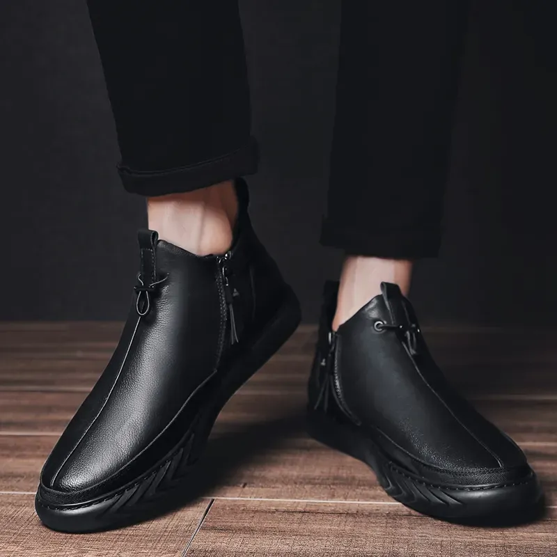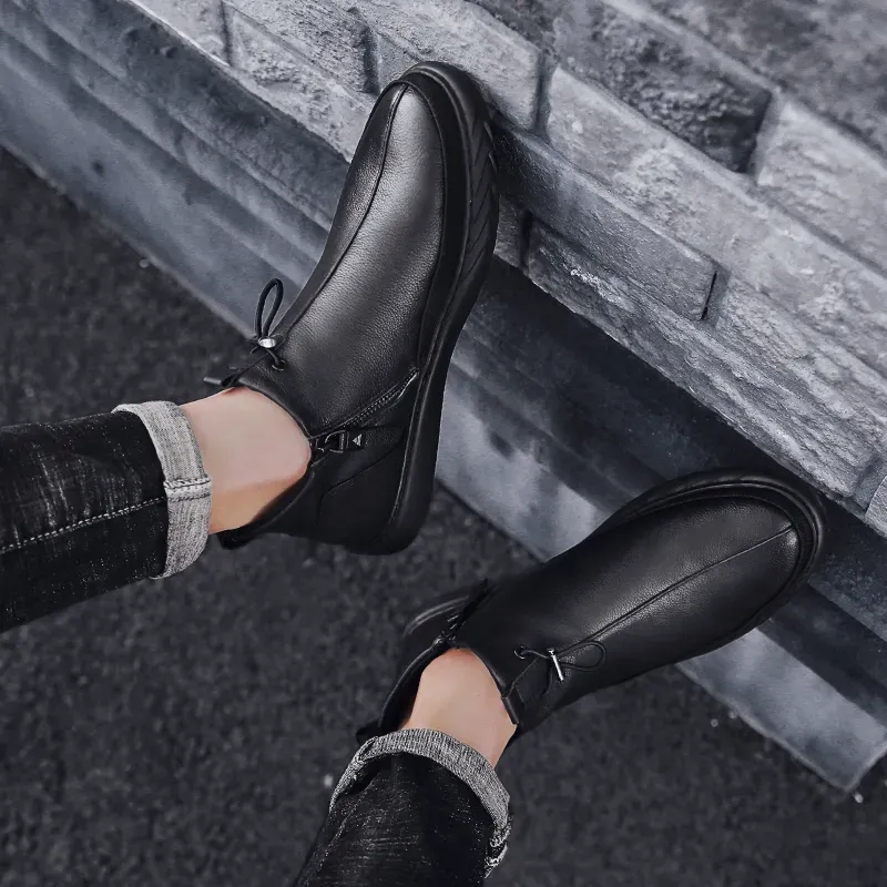 Men’s ankle boots code 1326 are a trendy product that is odor-resistant, breathable, and resistant to abrasion and slipping. This product is suitable for a formal style for an important business meeting, work sessions, or a special family event. The men’s leather shoes code 1326 are available in black and in sizes 36 to 44 at the Dimaj online shop. The upper material of this exceptional product is made of natural leather, ensuring its durability and strength. Additionally, the zipper designed and sewn on the side of these men’s leather shoes not only makes them easier to wear but also enhances their beauty.