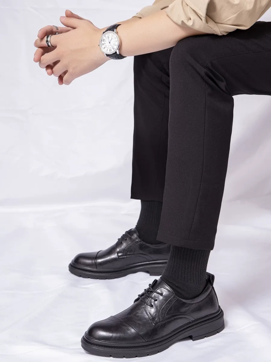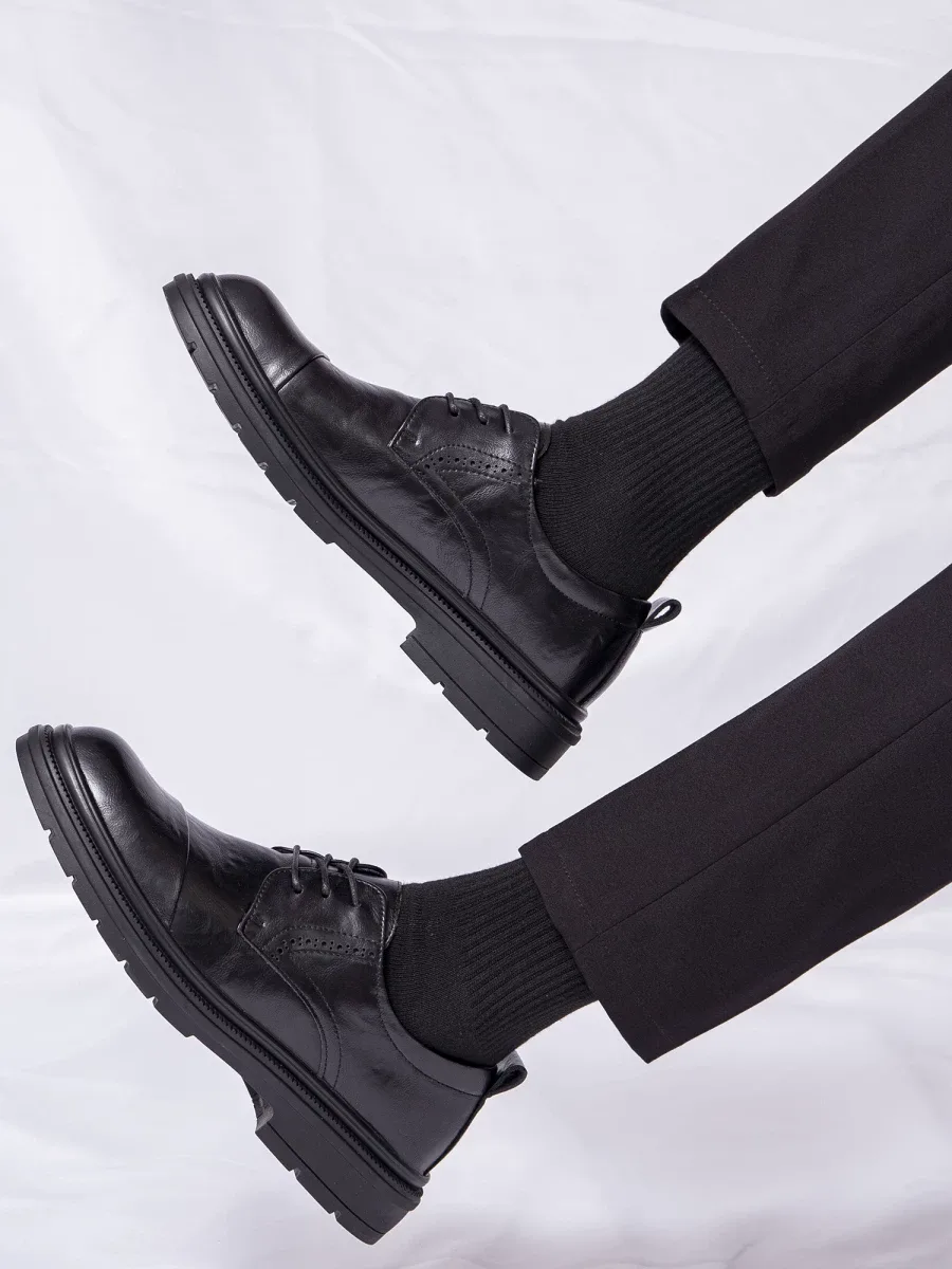 Men’s leather shoes code 2329 simultaneously showcase a classic and modern appearance. The leather laces and decorative perforations give the shoes a more classic look. Meanwhile, the insole is made of synthetic leather, enhancing its durability and flexibility, making it suitable for long-term use. The outsole is made of high-quality rubber, providing good grip and preventing slipping. Overall, these shoes are a combination of classic design and high-quality materials, making them an ideal choice for gentlemen seeking comfortable and stylish footwear.
