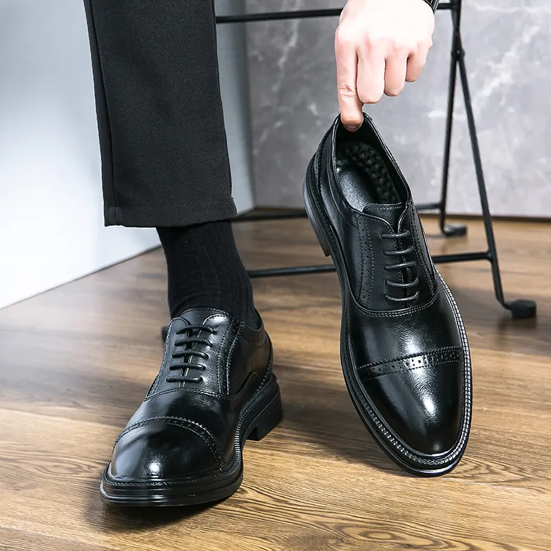 Are you looking for a formal shoe that not only enhances your style but also offers good quality and durability? The men’s leather shoe with code QXT1309 is an ideal option for you. The shoe’s upper is made of natural leather that is resistant to abrasion, as well as being insulated and waterproof. You can wear it comfortably even in the fall and winter seasons. The shoe’s sole is made of non-slip rubber, which has good resistance to wear and does not break easily. The breathability of the men’s leather shoe with code QXT1309 is high, allowing air to circulate well inside the shoe. You can order this leather shoe in two colors, black and brown, and create attractive styles with it.