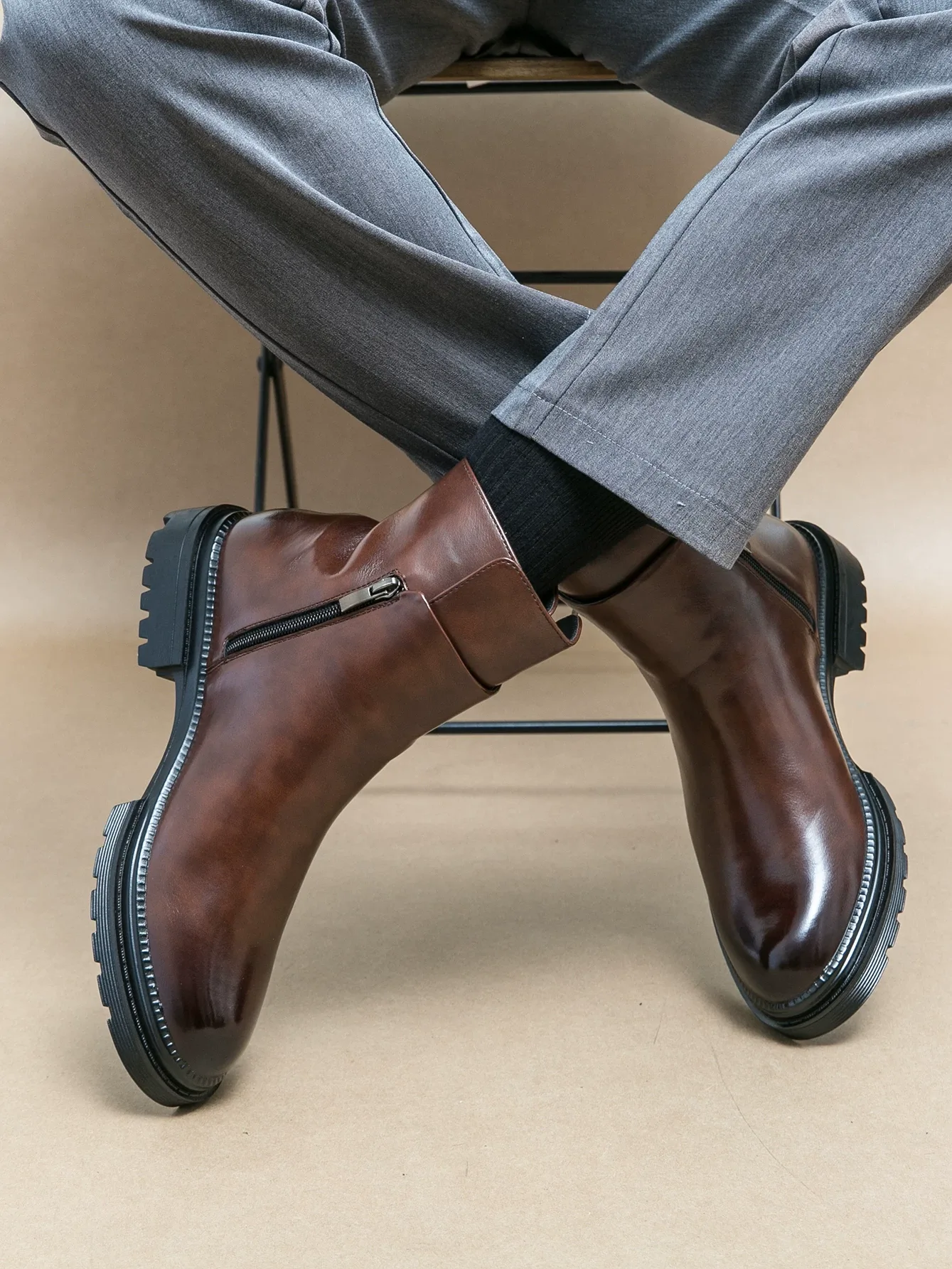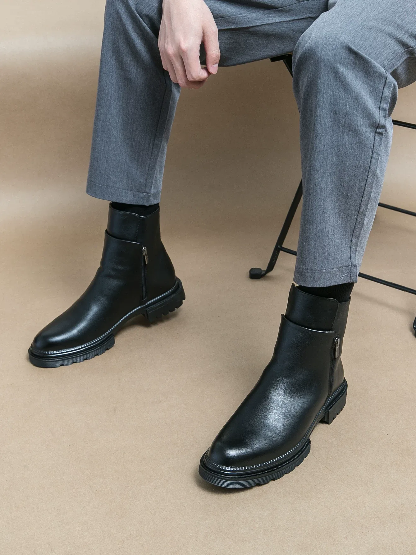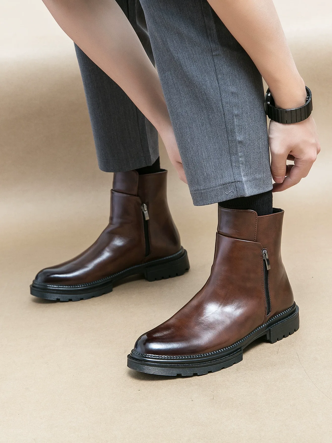Men’s Leather Ankle Boots with Side Zipper, Code 2339