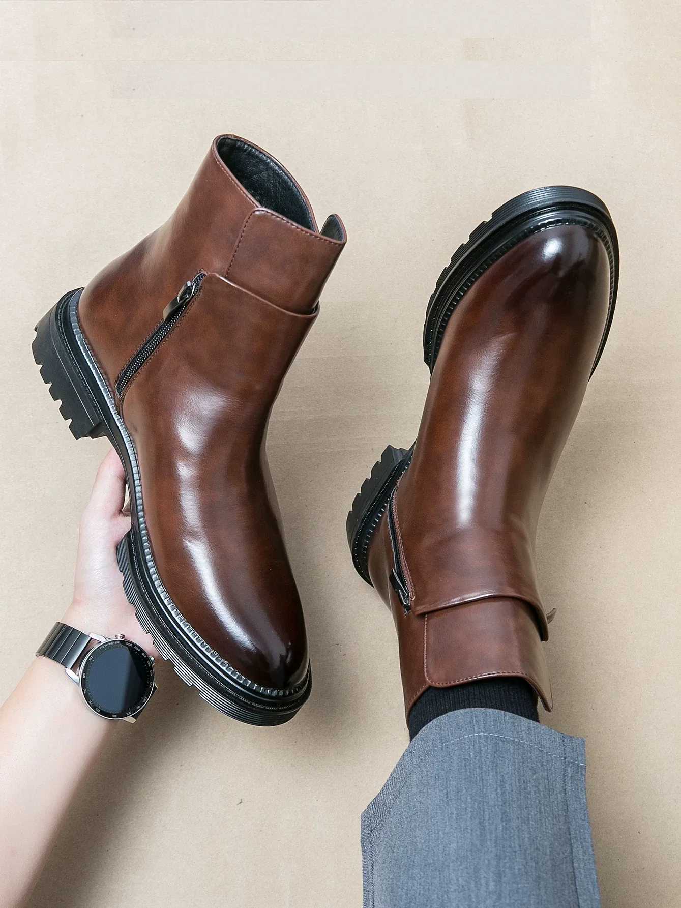 Men’s Leather Side-Zip Ankle Boots Code 2339 are stylish and attractive, combining simplicity with great beauty. Due to its classic and modern appearance, this ankle boot is suitable for all ages and enhances your style when paired with blue or black jeans. It is an ideal choice for formal and semi-formal occasions, or even for daily use during the cold seasons. The upper of this ankle boot is made from synthetic leather, which ensures the shoe’s longevity and durability, eliminating the need for annual purchases. The wide heels provide more stability and are perfect for those seeking greater comfort.