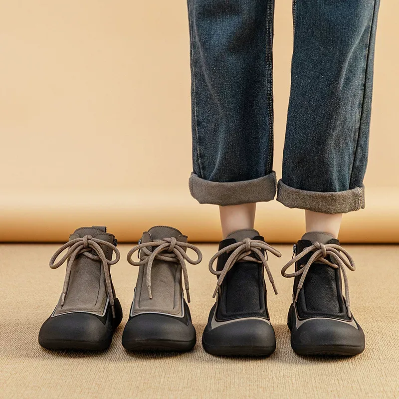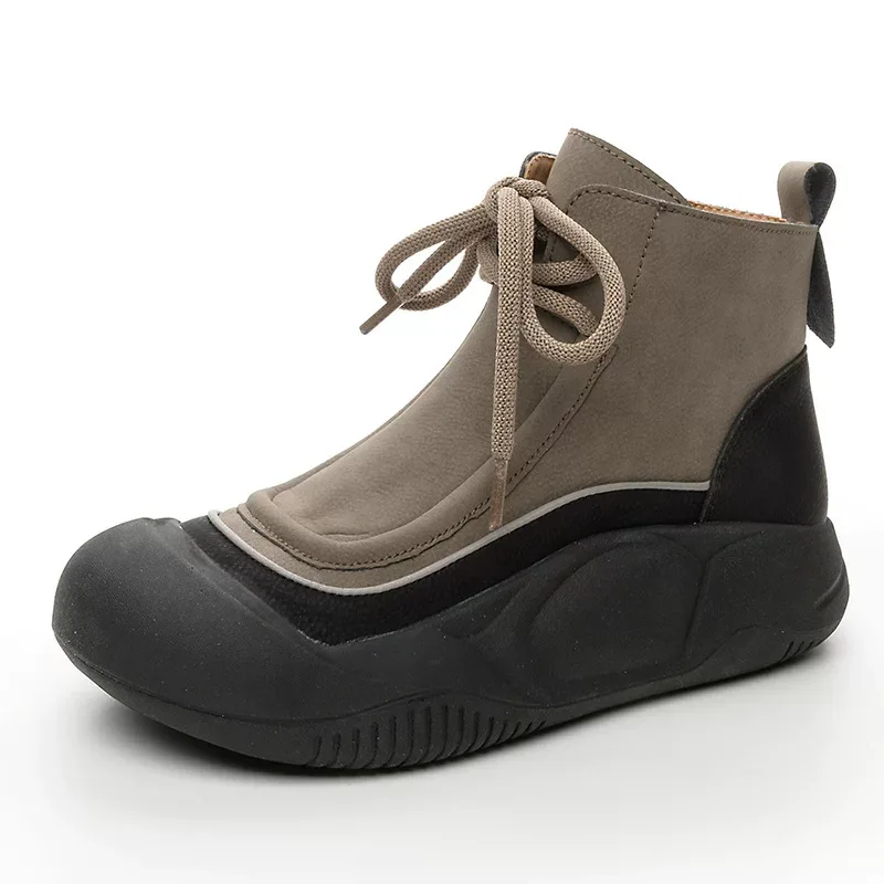 Men’s Natural Leather Ankle Boots, Code 2465, with a modern and sporty design, showcase a combination of colors and black. The shoe’s upper is made of natural material with a soft and smooth texture. The toe of the shoe is made of thick black rubber, which not only protects the foot but also gives the shoe a distinctive appearance. Additionally, it is suitable for comfort and preventing slipping. The wide brown laces, along with the long tongue, give the shoe a sporty and casual look. These ankle boots, with their unique design and neutral colors, are a suitable choice for everyday and sporty styles.