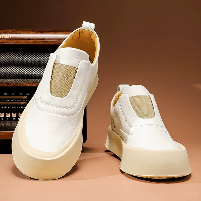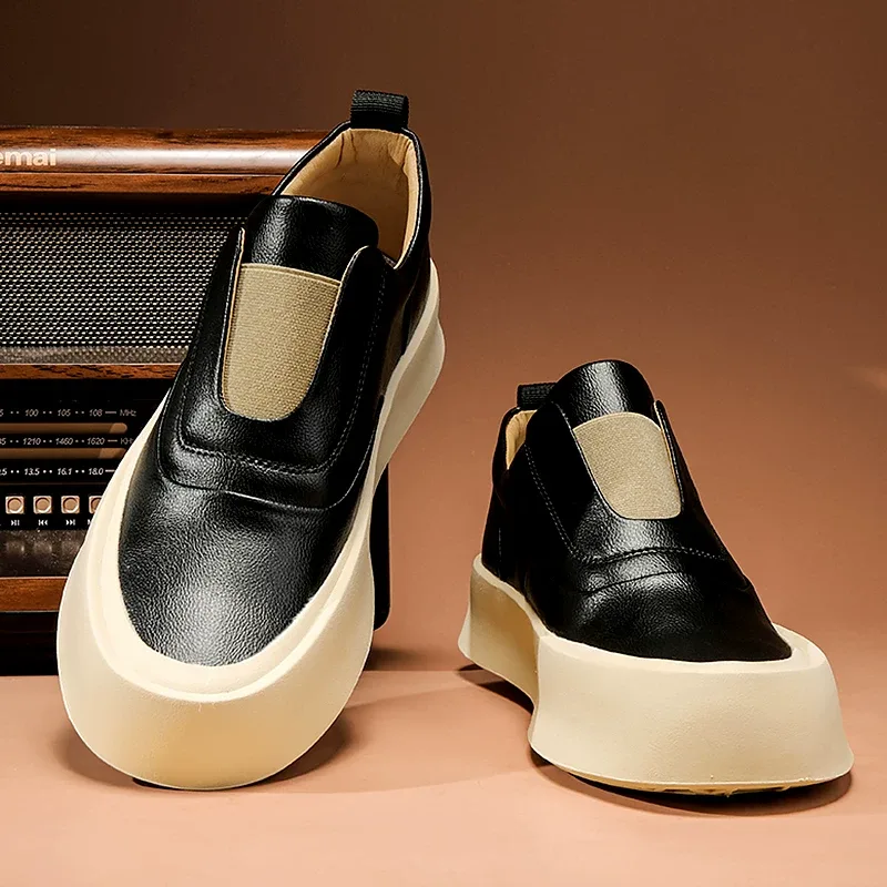 Men’s Shoes Code 2480 is a pair of men’s shoes with a simple and stylish design, suitable for both everyday use and semi-formal occasions. The shoe’s body is made of high-quality synthetic leather, with a piece of khaki-beige leather used as a decorative tongue at the front. The sole is made of thick cream-colored rubber, providing extra comfort and durability. The slip-on design makes it easy to put on and take off, making it a versatile option for various styles.