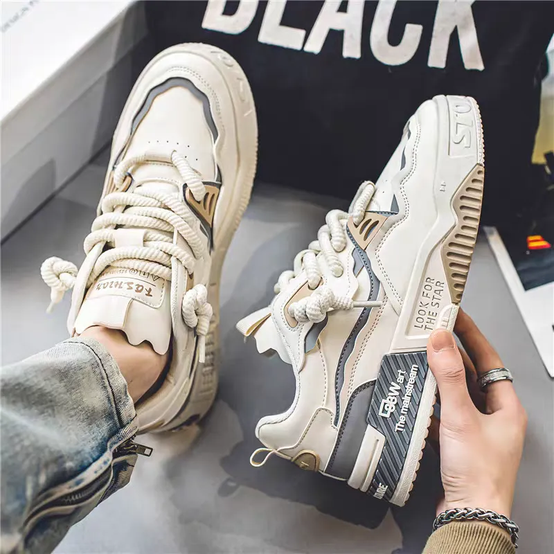 Men’s sneakers code 1583 are designed to be bulky and unique, making them a favorite among stylish men. With the use of various colors in the design, you can pair them with other colors like cream, brown, black, etc. In terms of quality, the shoe’s upper is made from PU leather, which is completely vegan and offers features such as abrasion resistance, heat resistance, and more cost-effectiveness. Additionally, the outsole is made from rubber, allowing you to continue on slippery paths without worrying about slipping. This high-quality product is provided to ensure your satisfaction and comfort during walking. These imported sneakers are available for order in black and cream from the Dimaj website.