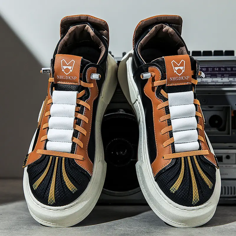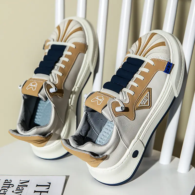 The men’s sneakers with code HST1283 are a popular, attractive, and comfortable product considered a choice for stylish gentlemen. The unique style of this product makes it easy to pair with jeans, joggers, mom-style pants, and more. These shoes are available in two color combinations: white and black, and white and beige, at the online shop Dimaj. The upper material of these chic and beautiful shoes is made of PU leather, which guarantees high durability and strength. If you are looking for a beautiful yet comfortable and durable shoe to match with casual, hip-hop, sporty, and similar teenage styles, we recommend the men’s sneakers with code HST1283.