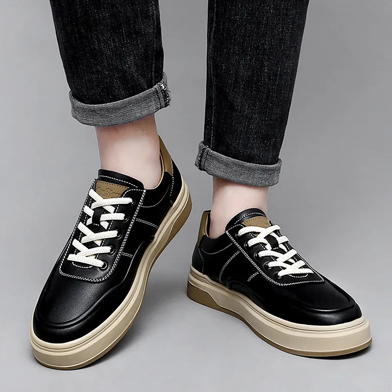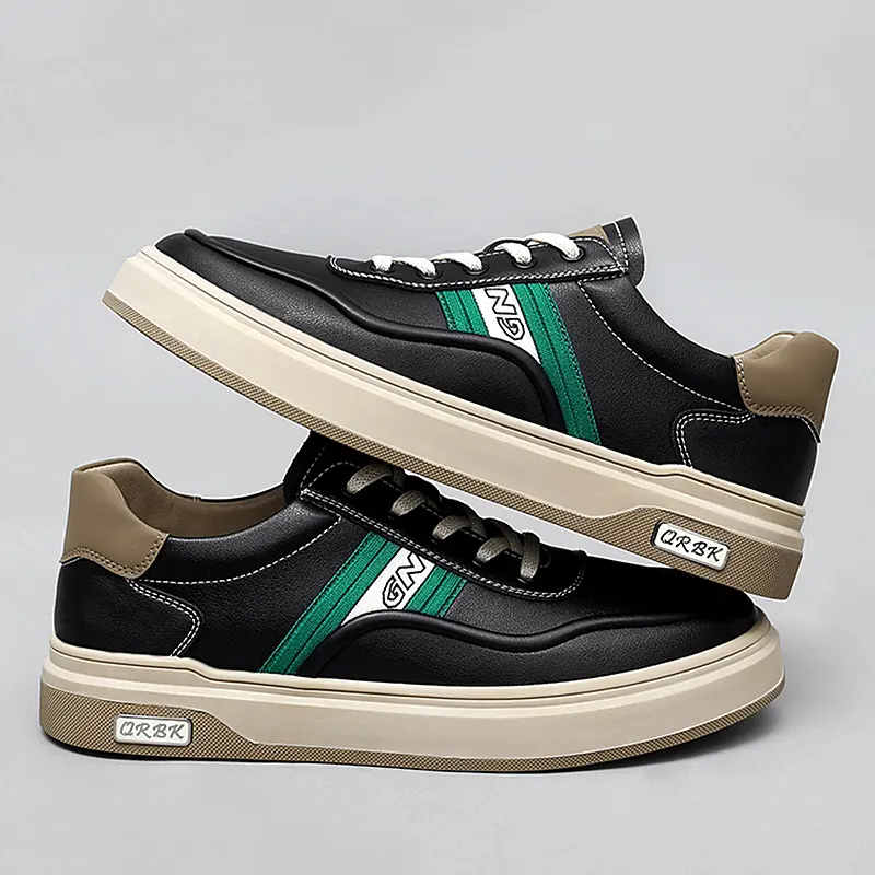 The men’s sneakers, code QXT1266, are an excellent choice for long walks in any season of the year. The shoe’s upper is made from high-quality genuine leather that does not easily wear or corrode over time. This upper absorbs moisture minimally and dries quickly if it gets wet. Therefore, you can confidently use this product in snowy and rainy weather. The shoe’s sole is made of durable, non-slip rubber that does not exert excessive pressure on the foot. The lightweight nature of the shoe allows you to wear it for long hours without feeling pain or discomfort. The color scheme of this model is such that it can be matched with any style.