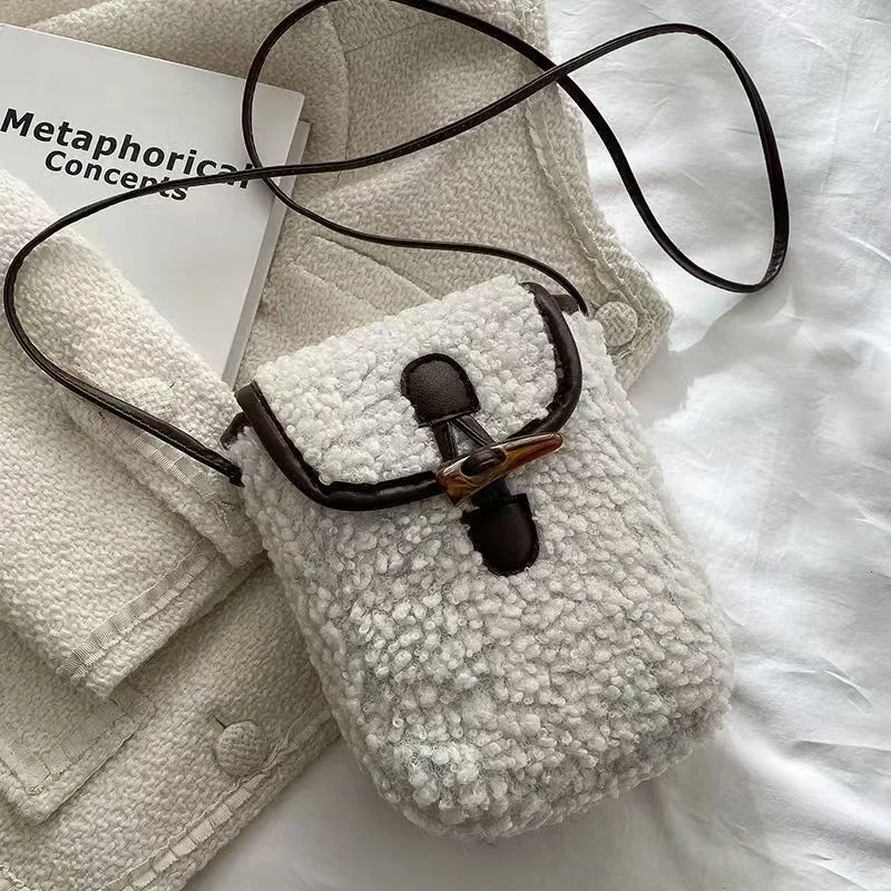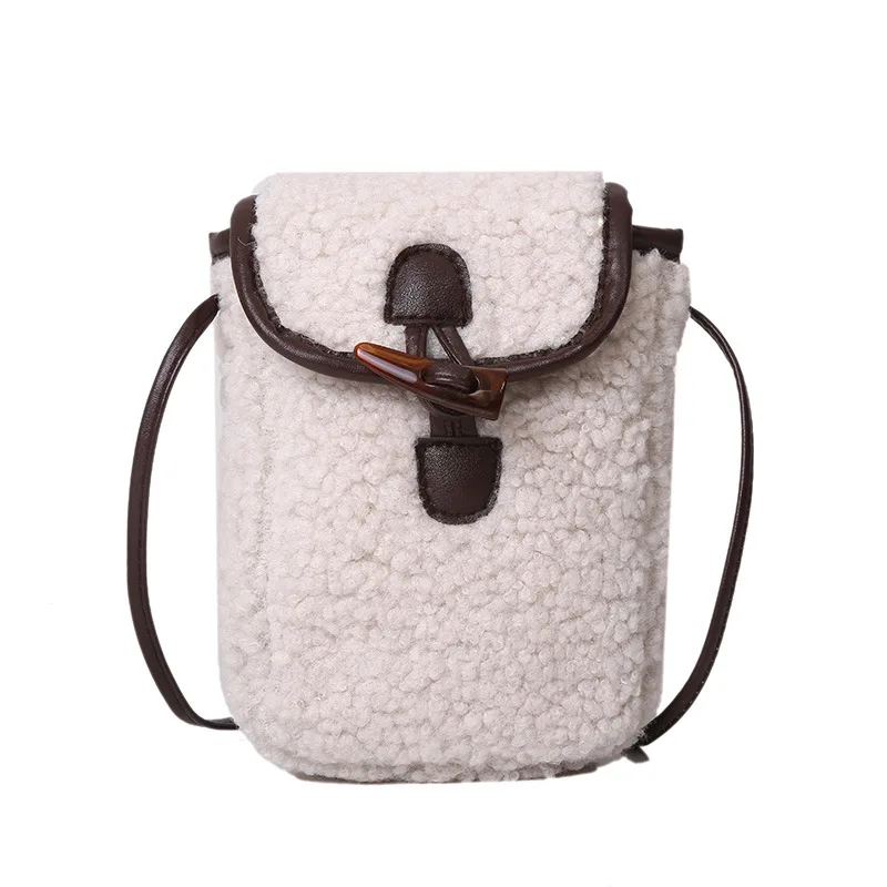 The women’s teddy passport bag, code 3424, with its compact design and soft woolen texture, is a lovely choice for fall and winter styles. Besides its whimsical and pleasant appearance, this bag is practical and lightweight, making it ideal for carrying a mobile phone, cards, and daily essentials. Its attractive color combined with brown leather details makes it a unique and distinctive item that easily pairs with coats, raincoats, or winter sweatshirts. This bag is a suitable choice for walks, shopping, or friendly gatherings on cold days.
