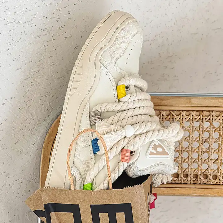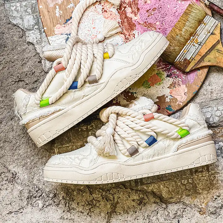 The HCh1201 model women’s and men’s sneakers come in an eye-catching color scheme, perfect for those with a unique taste. The upper material of these shoes is made of mesh, ensuring high breathability. The sole is made from durable EVA technology, and the inner lining is also mesh, providing comfort and ease of movement while enhancing air circulation inside the shoe. The colorful beads used on these white sneakers break the monotony and turn them into a captivating piece of art. The unique style of these sneakers makes them easy to pair with various types of jeans, from baggy to mom style, straight, and slouchy.