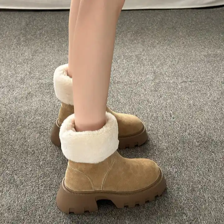 Women’s ankle boots code WYD1047 featuring a suede upper and lined with woolen materials, is one of the sporty ankle boot designs for the new season. This product is available in two color options: black and light brown, which can be paired with sporty and casual styles.
