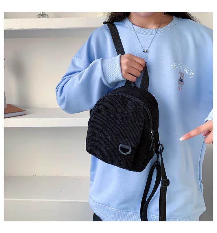 The women’s backpack, code 2003, is designed and produced in a variety of very beautiful colors. The material used on the exterior of this backpack is made of very high-quality corduroy velvet, which enhances the beauty of this product. The interior space of this bag is made of polyester, which is highly durable and waterproof. You can use both straps of this bag as a backpack or just one strap as a shoulder bag. The front part of the bag is dedicated to a large and practical pocket, which you can use to store small and essential items.