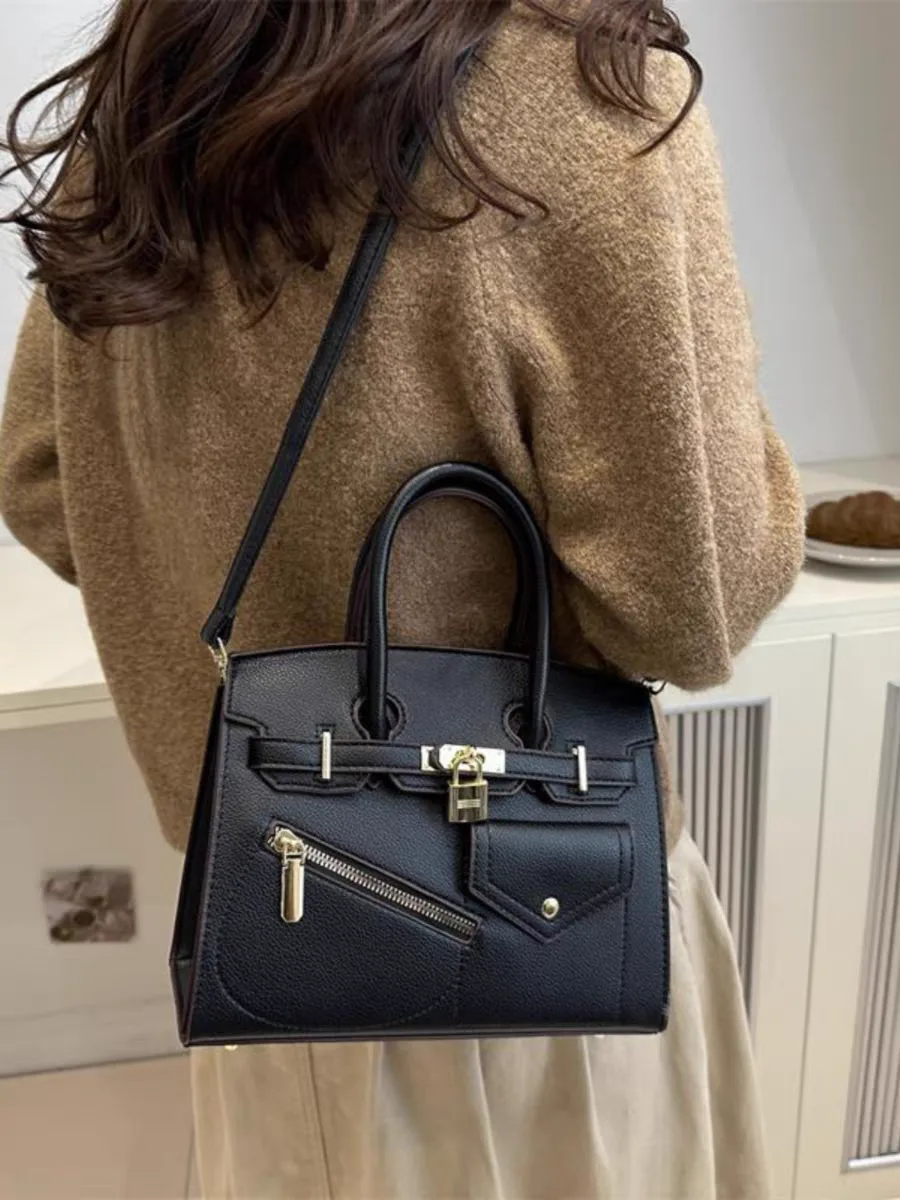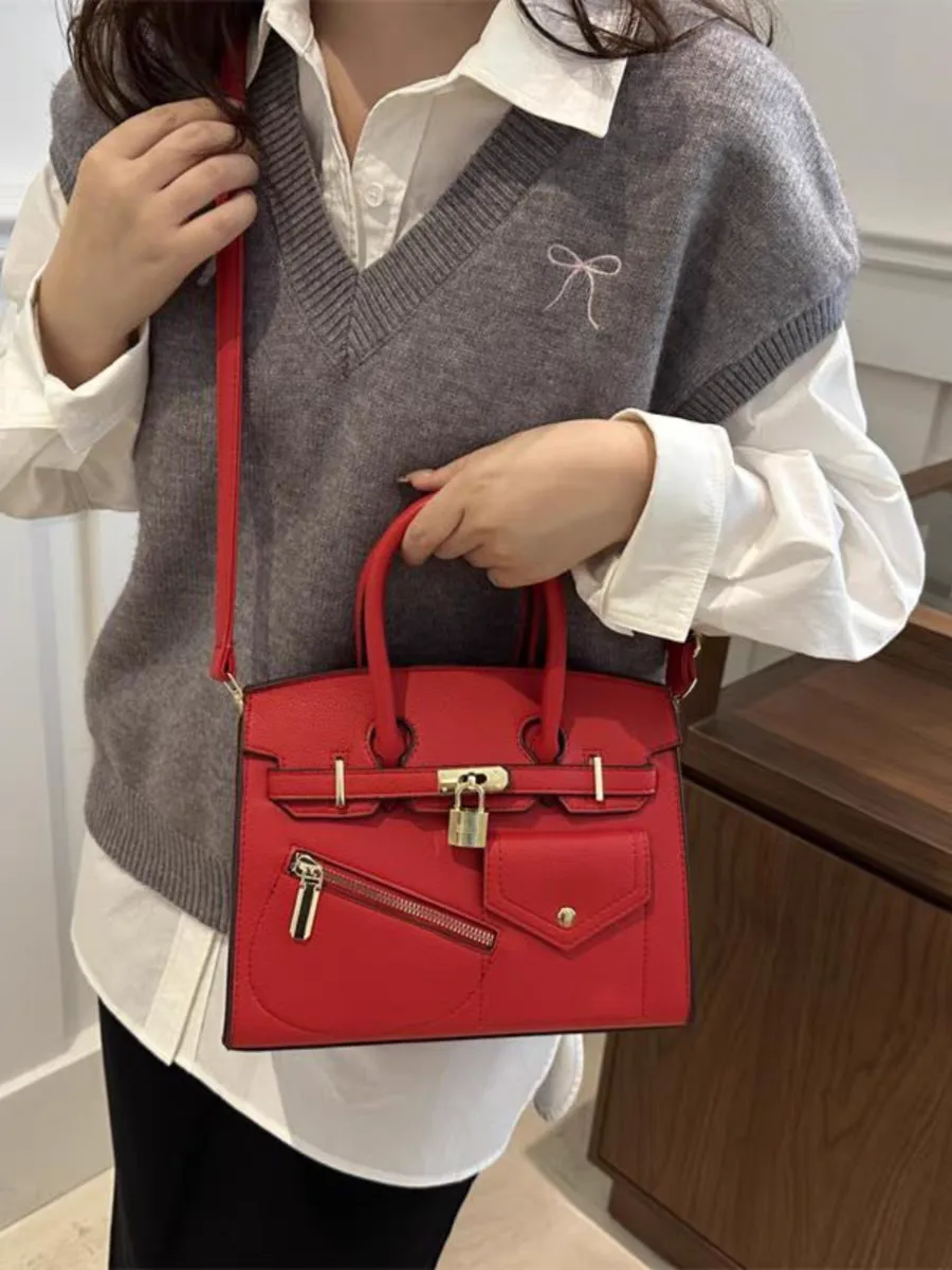 Women’s evening handbag code 2764 is a chic and elegant product made with a PU exterior and synthetic leather interior. This bag features a thin strap, allowing it to be used as a shoulder bag. The gold-colored zipper, lock, and hardware make it suitable for various formal and semi-formal occasions. It comes in attractive colors for young women to complement a beautiful minimal style. Additionally, fans of casual style can use this bag due to its versatility as both a shoulder and handheld bag.