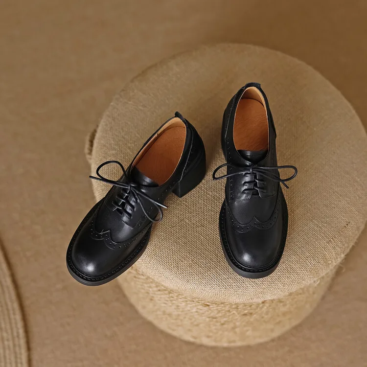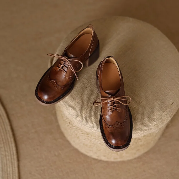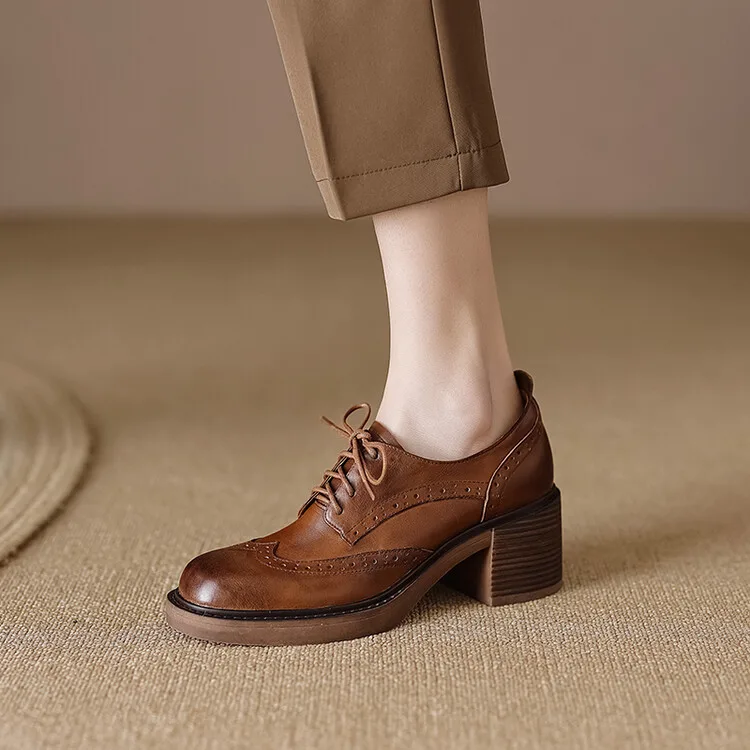 The women’s formal natural leather shoes, code 3202, with a classic design and high block heels, showcase a blend of traditional and modern styles. The upper, lining, and insole of these shoes are entirely made from high-quality natural leather, which, in addition to offering durability and longevity, provides exceptional softness and comfort for the feet. Traditional Oxford design details, such as narrow laces and punched decorations on various parts of the upper, give these shoes a chic and authentic appearance. The high and wide block heel not only adds height and creates an attractive look but also ensures balance and comfort while walking. These all-natural leather shoes, with their high-quality construction, are an ideal choice for women seeking durable, comfortable, and stylish footwear for various occasions.