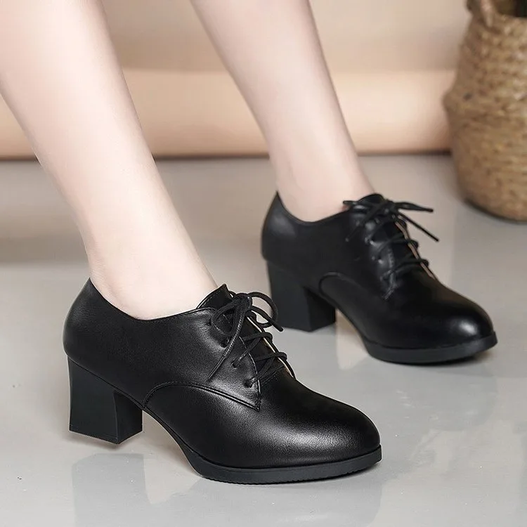 Women’s formal leather shoes, code 3219, with an upper made of synthetic leather (PU) and a microfiber insole, are a stylish and comfortable choice for parties, formal events, and the workplace. Its delicate design, along with a standard heel, creates an attractive appearance that complements your formal style. The durable rubber sole provides appropriate durability and traction, ensuring you feel secure and comfortable while walking. Its classic black color easily matches various outfits, and the high-quality construction makes these shoes a lasting companion.