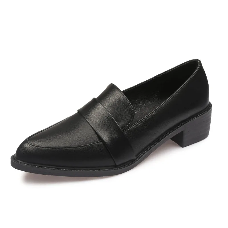 Women’s formal shoes, code 3207, have a chic and classic appearance. The upper material is made of high-quality synthetic leather with a relatively smooth and glossy texture. The simple yet eye-catching design of these shoes, featuring a slightly pointed narrow toe, gives them a modern look. A wide strap made of the same material as the shoe is placed horizontally across the midsection, adding subtle details. The short, block heel not only provides comfort during wear but also maintains the shoe’s elegance and formality. The fine, matching stitches along the edges of the shoe showcase the craftsmanship and precision in its construction.