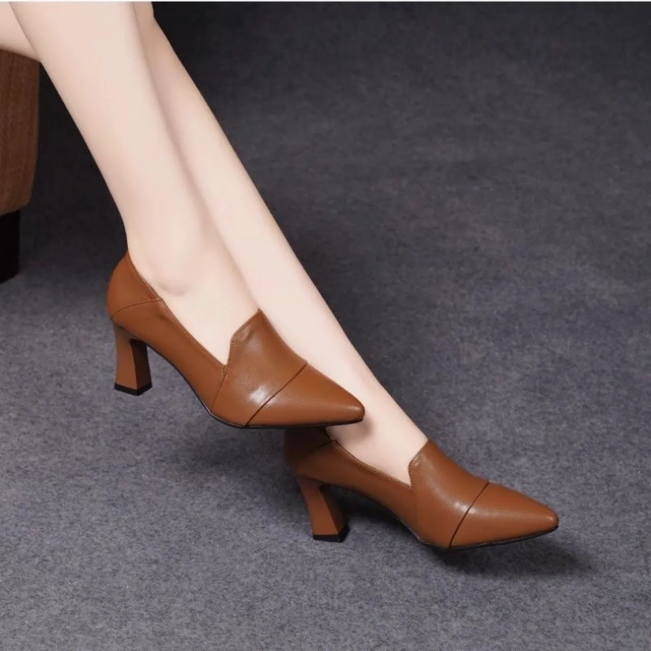 Women’s formal shoes, code 3208, with popular color options, offer a charming and stylish appearance. The front part of the shoe features a design with diagonal lines and delicate stitching, creating a unique depth and beauty. The narrow and pointed tip of the shoe effectively conveys a sense of elegance and femininity. The relatively high and wide heel not only adds height and style but also provides a degree of comfort. Given its special and attractive design, this shoe can easily complement various formal and semi-formal styles, bringing a unique style to your wardrobe.