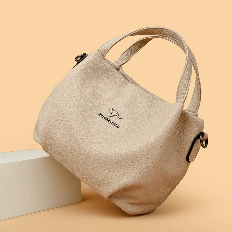This is a stylish and spacious women’s handbag made from high-quality natural leather. The bag features a bucket design, providing ample interior space for essential items. Delicate and precise stitching is visible throughout the bag, indicating its high-quality construction. The straps are made of leather and match the color of the bag, with adjustable features, allowing it to be used as a handbag or a shoulder bag. With its unique and spacious design, this bag can be an ideal choice for women seeking a distinctive and attractive bag for everyday use.