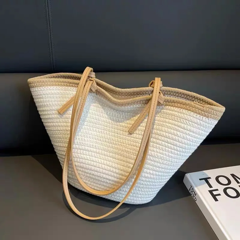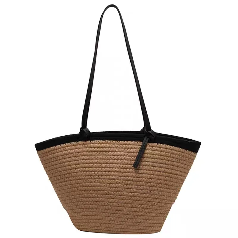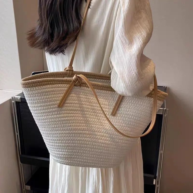 The women’s crossbody woven bag, code 2561, is one of the popular summer bags on the Dimazh website. This bag, with its simple basket-like design, is perfect for shopping and outings and can be incorporated into a casual style. Woven bags are suitable for summer and spring and can also be used in a minimal style due to their neutral color. It is recommended for young women with an average body mass to use this style of bag to create harmony between their figure and appearance. Woven bags are lightweight and spacious, making them very popular among fashion enthusiasts and practical users. It is also worth mentioning that fans of the boho style can use this bag due to its large size.