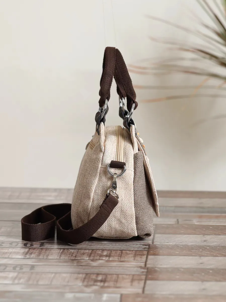 The women’s handbag and shoulder bag, code 2588, is an attractive and stylish imported product from the Dimazh website. This bag features two handles with metal buckles, giving it a more formal appearance suitable for use in formal and semi-formal settings. The wide adjustable strap allows it to be used in a casual style as well. The two-tone design of this bag makes it versatile for pairing with outfits in combinations of gray, cream, and brown in both darker and lighter shades. This bag is suitable for everyday activities, is spacious, and is considered part of the original imported series.