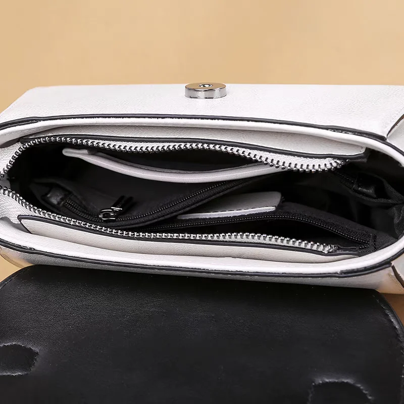 The women’s bag code 1410 is designed in a simple and modern style for fashionable women, making it a sophisticated and elegant addition to classic, casual, and minimal styles. A look inside the bag reveals several compartments, with one designated for bank cards and smaller items, and others for larger items like sunscreen, a phone, etc. Purchasing this product is considered reasonable due to its beautiful appearance, ample interior space, high quality, and durability provided by the use of natural leather.