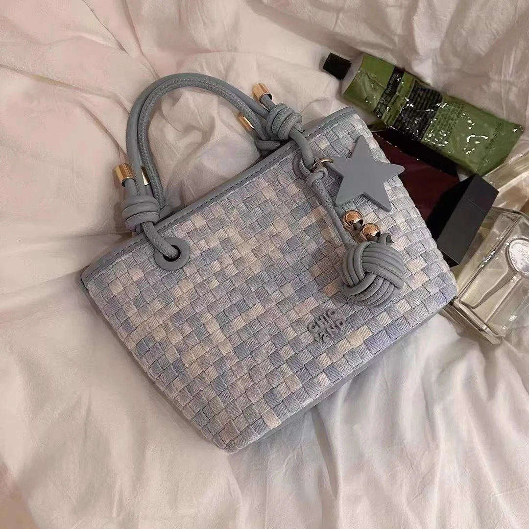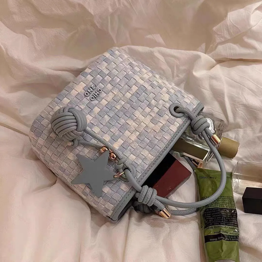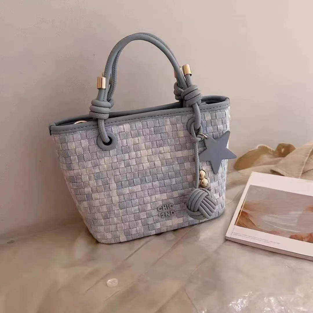 The women’s handmade woven design bag, code 2756, is another popular and original imported product on the Dimaj website. This bag features a wicker-like weave and a star-shaped pendant, and its unique color allows it to be styled for a party or matched with a formal outfit. Another feature of this bag is its ability to complement everyday and casual styles. The woven design of this handbag allows women to pair it with everyday clothing. Its spacious and large size has also made it appealing to students. The gold-colored hardware of this handbag makes it suitable for various formal and semi-formal occasions.