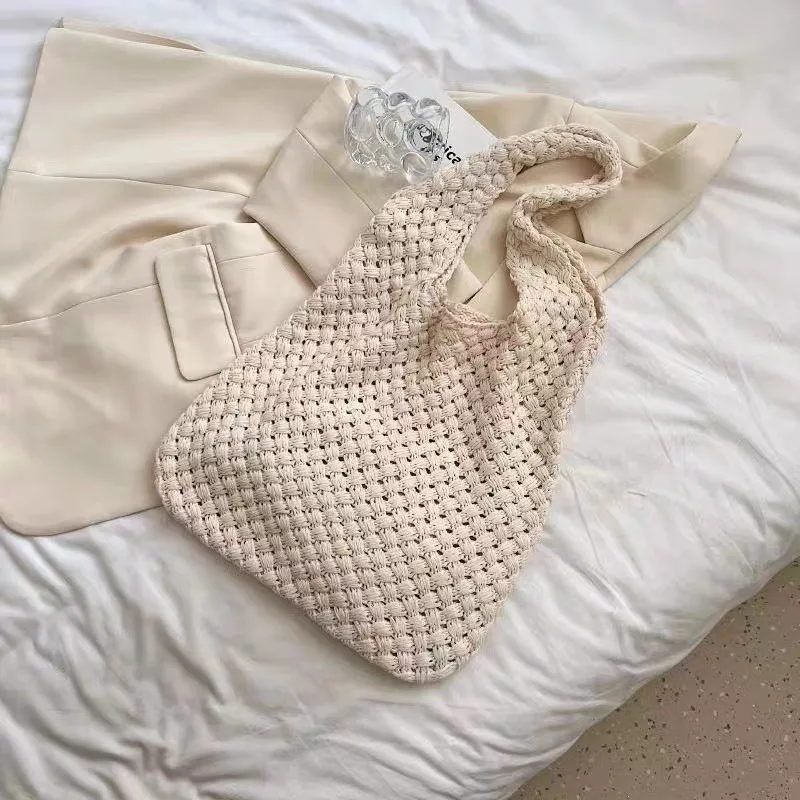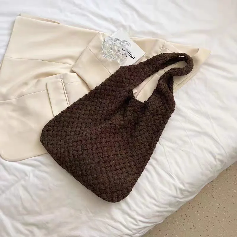 The women’s and girls’ knitted shoulder bag, code 3102, is a stylish and practical bag with an attractive design. The knitting of the bag is designed to be large and visible. The handles of the bag are made from the same material as the bag itself and are seamlessly attached to the body of the bag. The bag has a medium volume and, given its size, provides enough space to store daily personal items. The design of the bag is simple and casual, making it suitable for various occasions such as shopping, walking, and more.