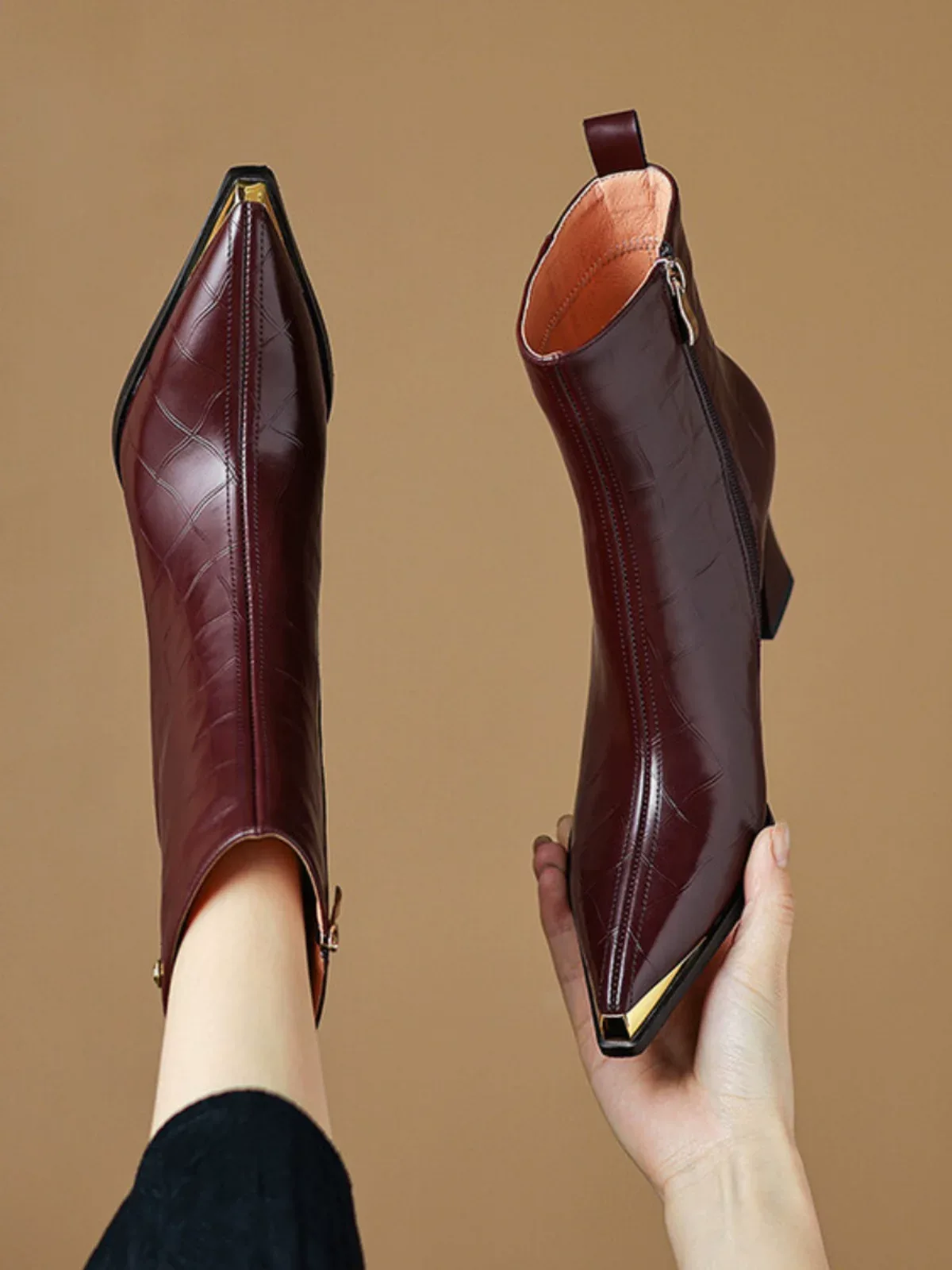 Women’s Leather Ankle Boots With Back Zipper, Code 2303