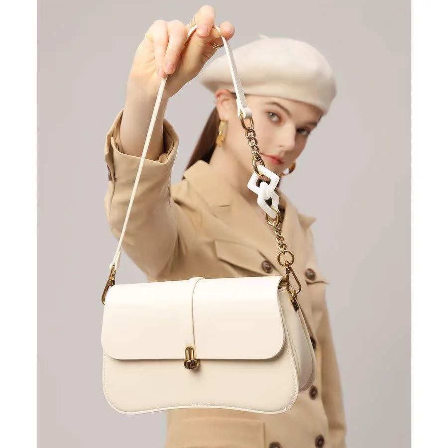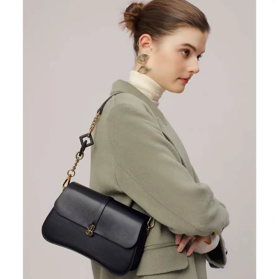 Women’s Leather Bag Code 1469 is a very stylish and durable product, and the size considered for this bag is small. Given this feature, you can place small essential items such as keys, bank cards, moisturizer, and a mobile phone in this product. If you are interested in simple, chic, and minimal styles, our recommendation for you is to choose and purchase this item. The type of accessory used in the strap of this bag makes it a unique and stylish product. You can style your bag with shoes, a belt, a watch, and a hat.