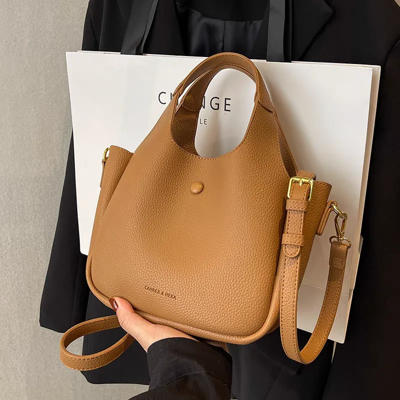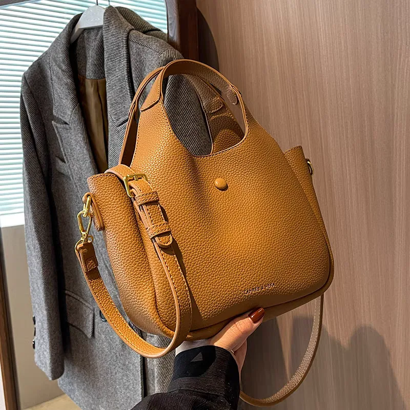 Women’s leather bag code 1738 is a high-quality product available in popular colors. This product features both short and long straps, making it suitable for hand-held and shoulder use. Additionally, the long strap is adjustable for height and can be easily modified. This bag offers ample space to accommodate most daily essentials. With its simple and elegant appearance, it is also suitable for work environments and parties. The material of this product is high-quality synthetic leather, ensuring good durability.