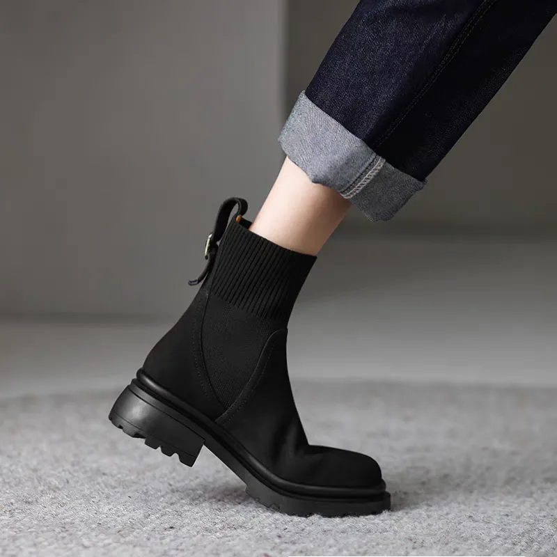 Women’s leather boots, code 1776, made from natural suede, are among the popular and stylish shoe models that provide unique comfort and beauty to the feet due to their soft and delicate material. In addition to its attractive appearance, natural suede effectively protects the feet against cold and moisture and offers good breathability. These ankle boots are available in modern designs and can easily be matched with various everyday or party styles. Additionally, the use of elastic in these ankle boots makes them very easy and practical to wear, making them a suitable option for the cold seasons of the year.