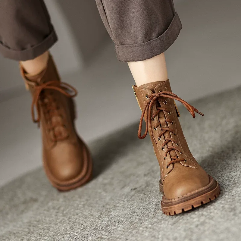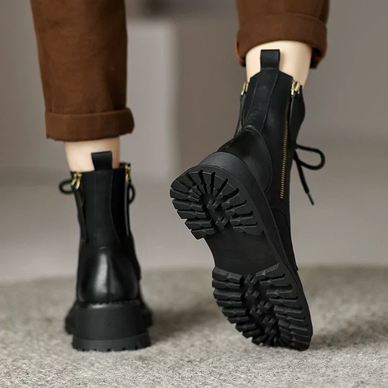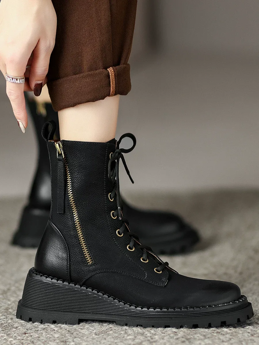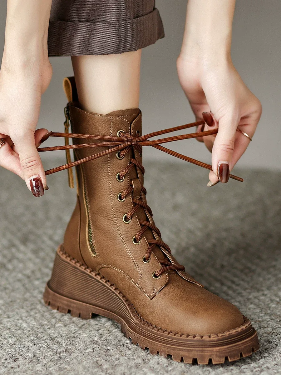 Women’s leather boots code 2201 is made entirely of genuine leather. There are zippers on both sides for easy wearing. The laces are long and can be adjusted for tightness or looseness around the calf. This boot is designed and produced in two colors: brown and black. The sole is made of TPR, which is lightweight and reduces the weight of the shoe, and is resistant to tearing, cracking, and abrasion.
