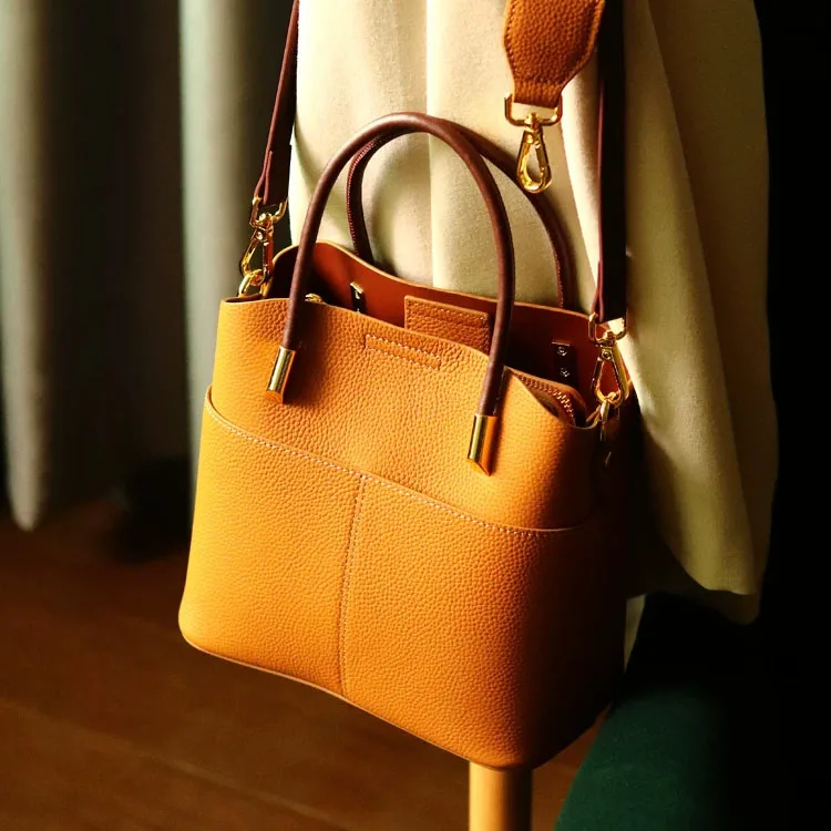 The women’s leather handbag and shoulder bag, code 2396, is made from high-quality leather with a stylish and practical design. It features two short handles and one adjustable long strap, allowing it to be used both as a handbag and a shoulder bag. On the front of the bag, there are two large patch pockets that not only add to its beauty but also provide ample space for storing essential items. Given its spacious design and durability, this bag is suitable for everyday use, work environments, university, and friendly gatherings. Its beautiful color options easily match various outfits, completing your style.
