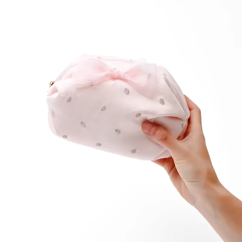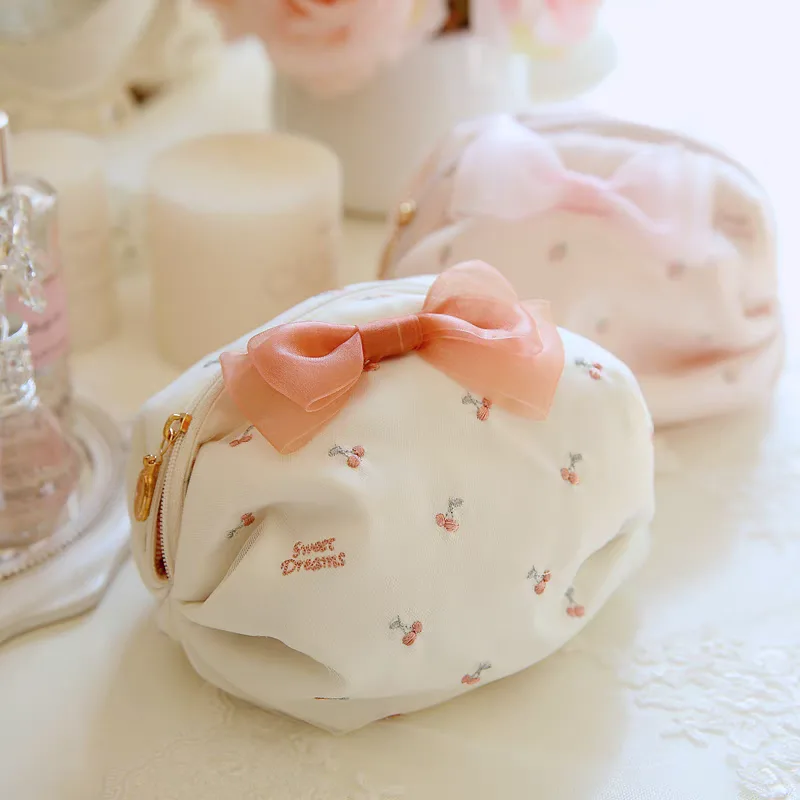 Women’s cosmetic bag code 2812 is made from soft and durable fabric with a beautiful and attractive design. The inner lining is made of fabric, providing a sense of softness and protection for the items inside the bag. The whimsical design with embroidered pears and a pink ribbon gives the bag a girlish appearance. This bag is well-designed for storing cosmetics and your smallest items, with ample space for daily essentials, making it an excellent choice for everyday use or travel. In addition to functionality, this bag also has a unique beauty.