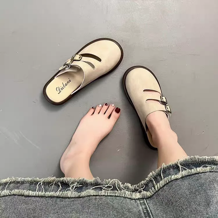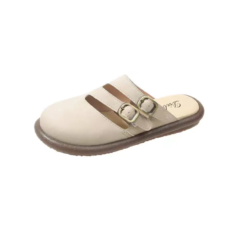 Women’s Mules , Code 2819 is a stylish and comfortable product. These slippers are designed with a closed front and feature two adjustable straps. You can use them as indoor slippers on various surfaces as well as outdoors because the sole is made of rubber and never slips. The upper and lining of this product are made of PU material, which is used for making various types of shoes due to its high durability and flexibility. This model of women’s leather slippers is available in two practical colors, cream and brown, at the Dimaj store.