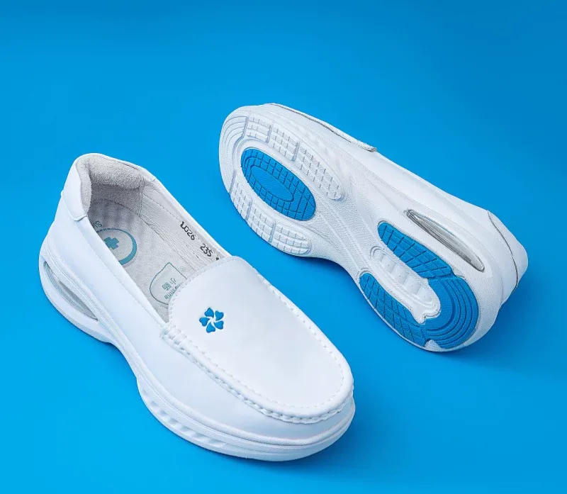 Women’s Natural Leather Orthopedic Shoes, Code 2595, are designed and produced with high-quality materials and have a classic style. The upper part of the shoes is made of high-quality natural leather, which not only adds beauty but also offers high water resistance and durability in various weather conditions. At the front of the shoe, there is a piece of leather with a blue flower that enhances the shoe’s attractiveness. The delicate and orderly stitching in different parts of the shoe indicates its high-quality construction. The shoe lining is made of emulsion, providing a special softness and preventing irritation and discomfort in the foot.