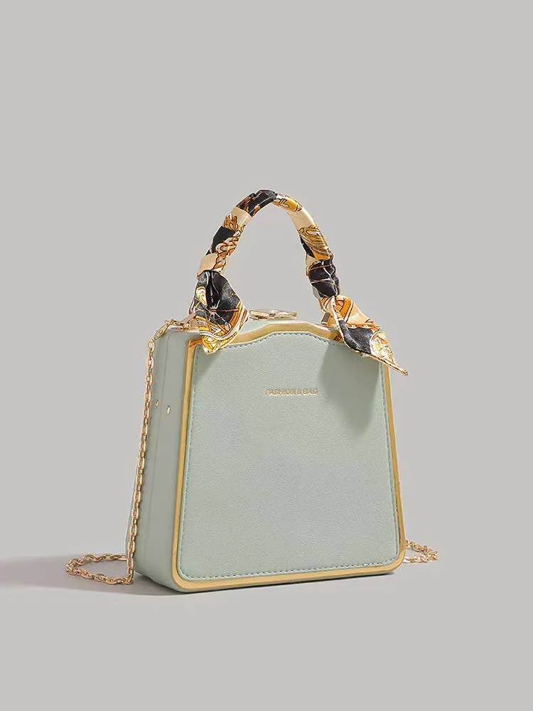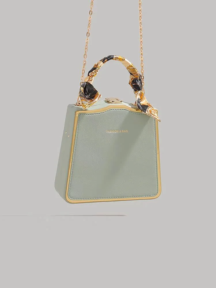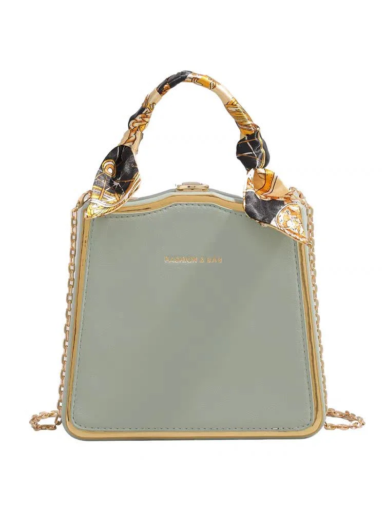 Women’s shoulder bag code 1568 in olive green is now available at Dimaj store. The outer material of this item is designed from PU leather, and the interior is made of polyester. The design of this product gives it a very good structure. This bag features a handle covered with a special fabric, and its strap has a chain-like appearance. Therefore, it can be used for parties and gatherings. It is recommended to pair this bag with white, black, cream, navy, and gold colors.