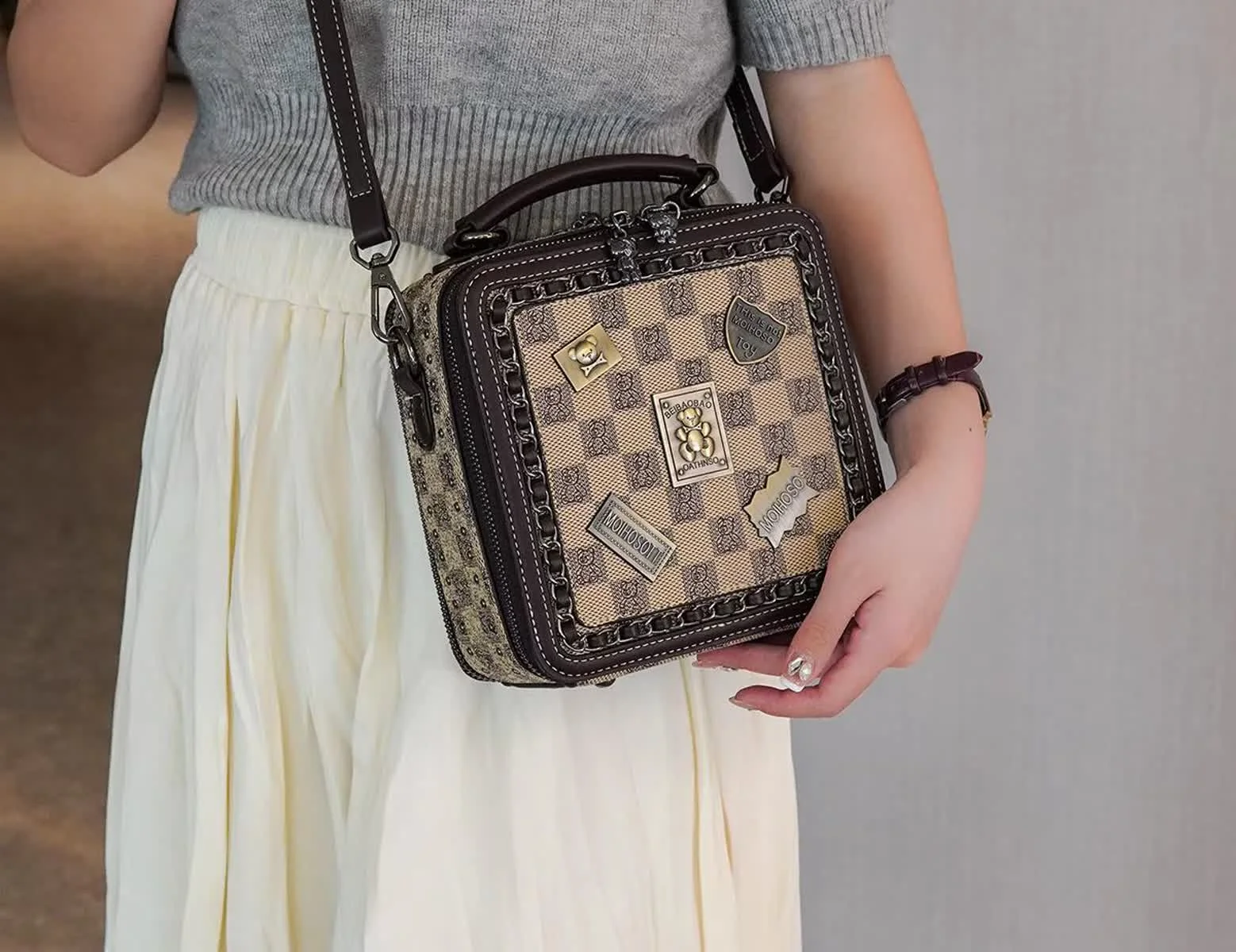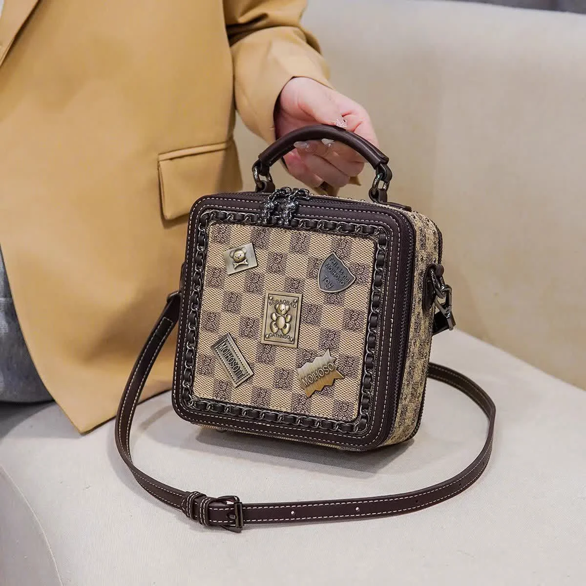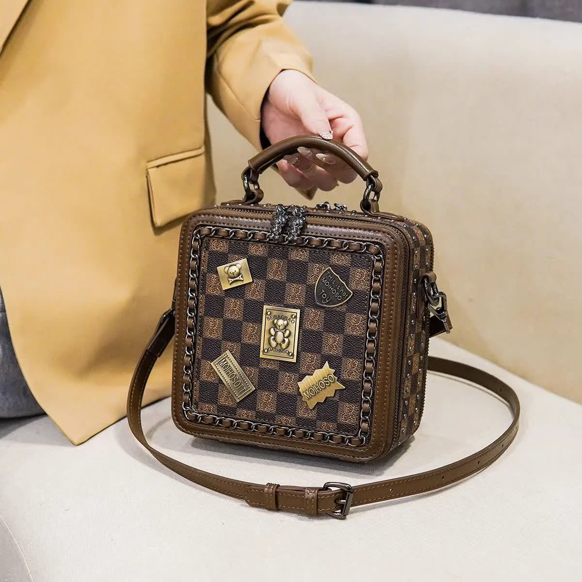 Women’s shoulder bag code 1635 is designed and produced in two colors: black and brown. The appearance of this product resembles a square, which is quite unique. The design on the surface includes small, colorful squares. This product features a strap and a handle, allowing you to use it both as a shoulder bag and a handbag. The exterior is made of high-quality PU leather, while the interior, which is very spacious and practical, is made of fabric. You can use this product for various daily activities.