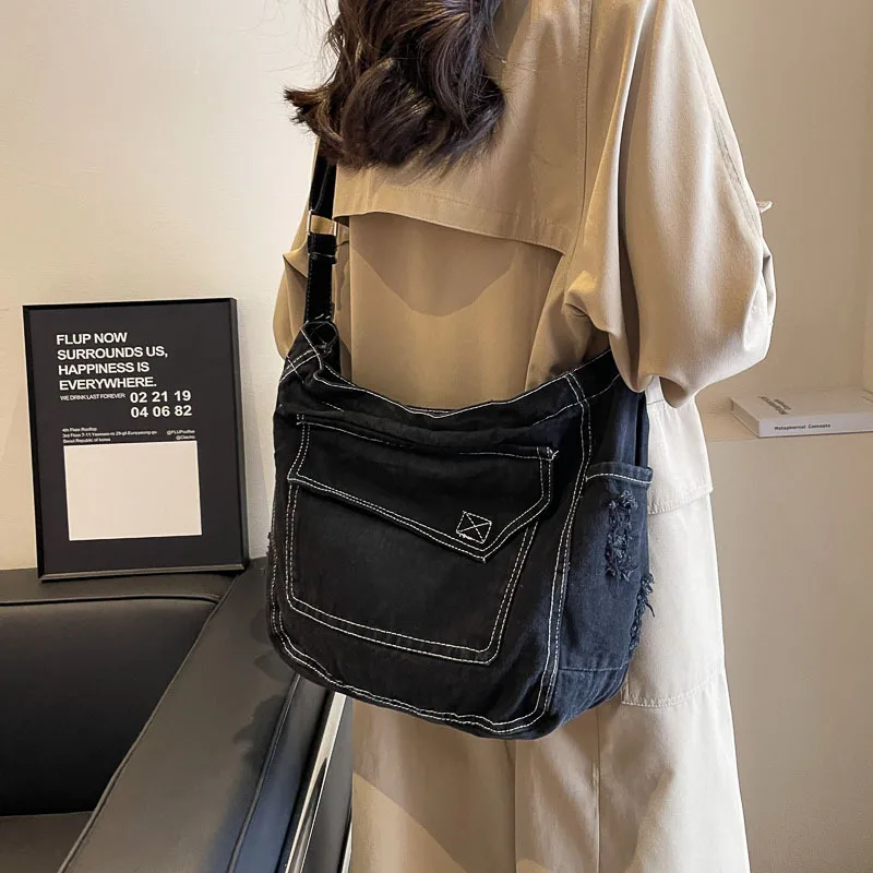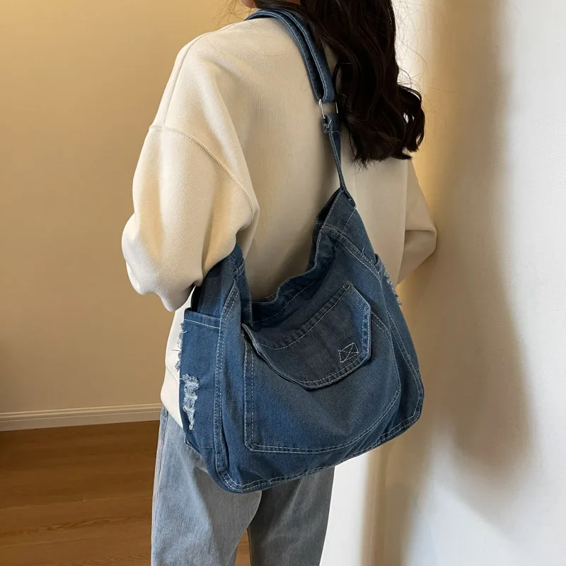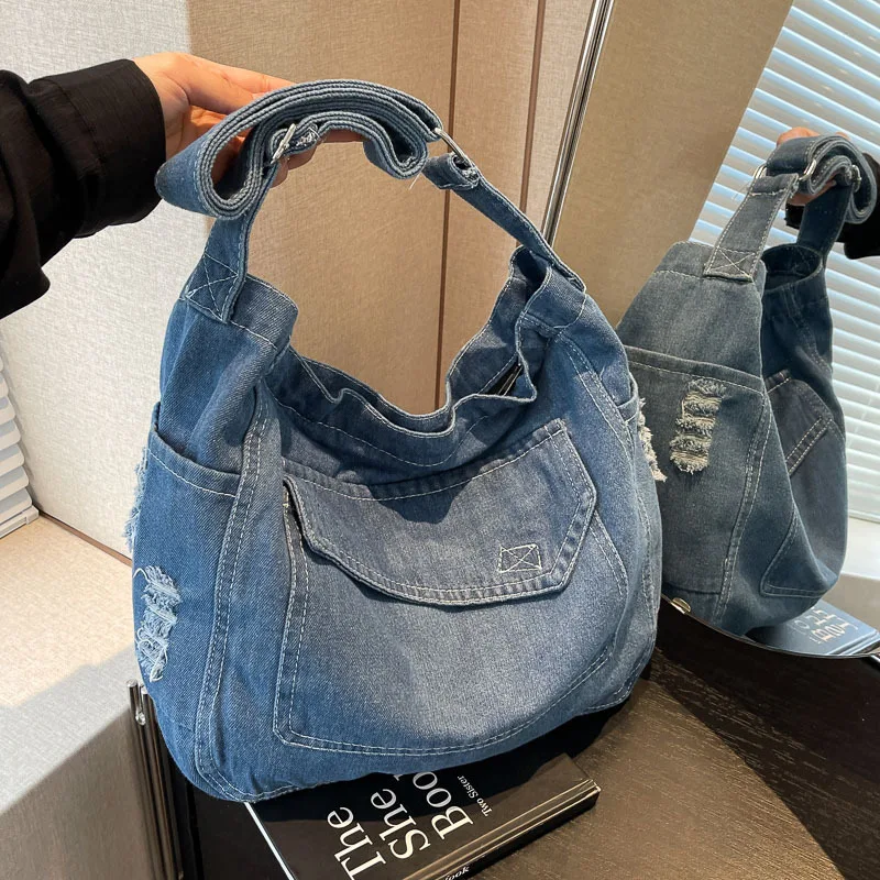 The women’s shoulder bag, code 3434, is a youth-friendly and timeless fashion choice that holds a special place in everyday styles with its sporty appearance and unique design. The denim material makes this bag durable and long-lasting against frequent use. Its simple yet functional design has made it a popular option for daily commutes, shopping, or friendly gatherings. The adjustable strap and ample space for essential items make this bag a comfortable and stylish companion for casual and street styles.