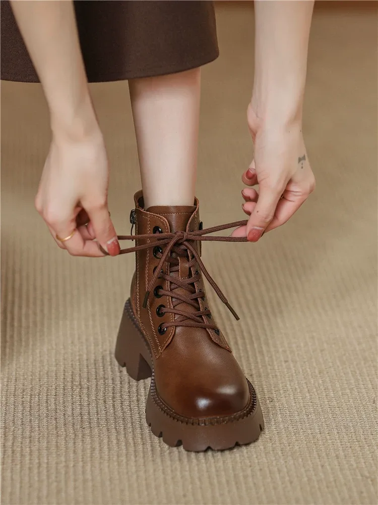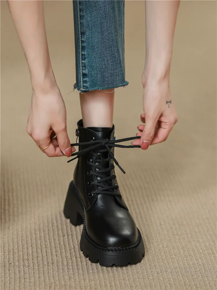 Women’s Lace-up Ankle Boots With Side Zipper, Code 2174