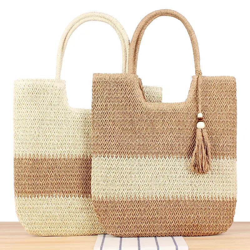 Women’s Straw Handbag Code 2729 with a tote design is primarily designed for travel and outings. This bag is suitable for casual and even boho styles. The large straw bag is ideal for young women with a simple body shape to enhance their appearance. In general, women’s straw bags are very popular in fashion and style due to their natural and native look. They beautifully complement various outfits such as summer dresses, beachwear, and outdoor clothing. Additionally, these bags are available in a variety of colors and designs, including floral and leaf patterns, waves, geometric, and fantasy designs, which significantly aid in creating a personal style.
