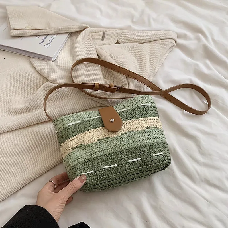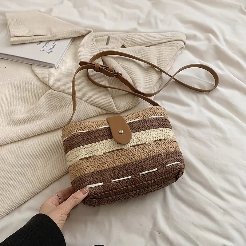 The women’s straw shoulder bag, code 2727, is another original and imported straw bag available on the Dimazh website. This bag is a unique and stylish choice for those seeking lightness and comfort. The straw shoulder bag features a unique and high-quality design, woven with a combination of two colors, which can complement any style. Straw bags are suitable for everyday use, outings, and even parties. They boast features such as a beautiful and modern design, spaciousness for carrying items, excellent quality, and high durability. They are suitable for all tastes and can be integrated with minimal, casual, everyday, and boho styles.