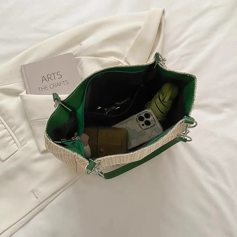 The Tote Women’s Woven Bag Code 2583 is considered one of the spacious and large shoulder bags, specifically designed for casual and everyday styles. This bag features silver metal buckles made of steel, adding to its visual appeal and giving it a formal look. If you are looking for a bag suitable for university environments, this spacious bag is recommended by the Dimaj site, as it is not only roomy but also easily styled with various outfits. Woven shoulder bags are also suitable for travel, outings, and shopping. The hardware of this bag, with the addition of a hanging accessory, makes it suitable for use at friendly gatherings and parties.