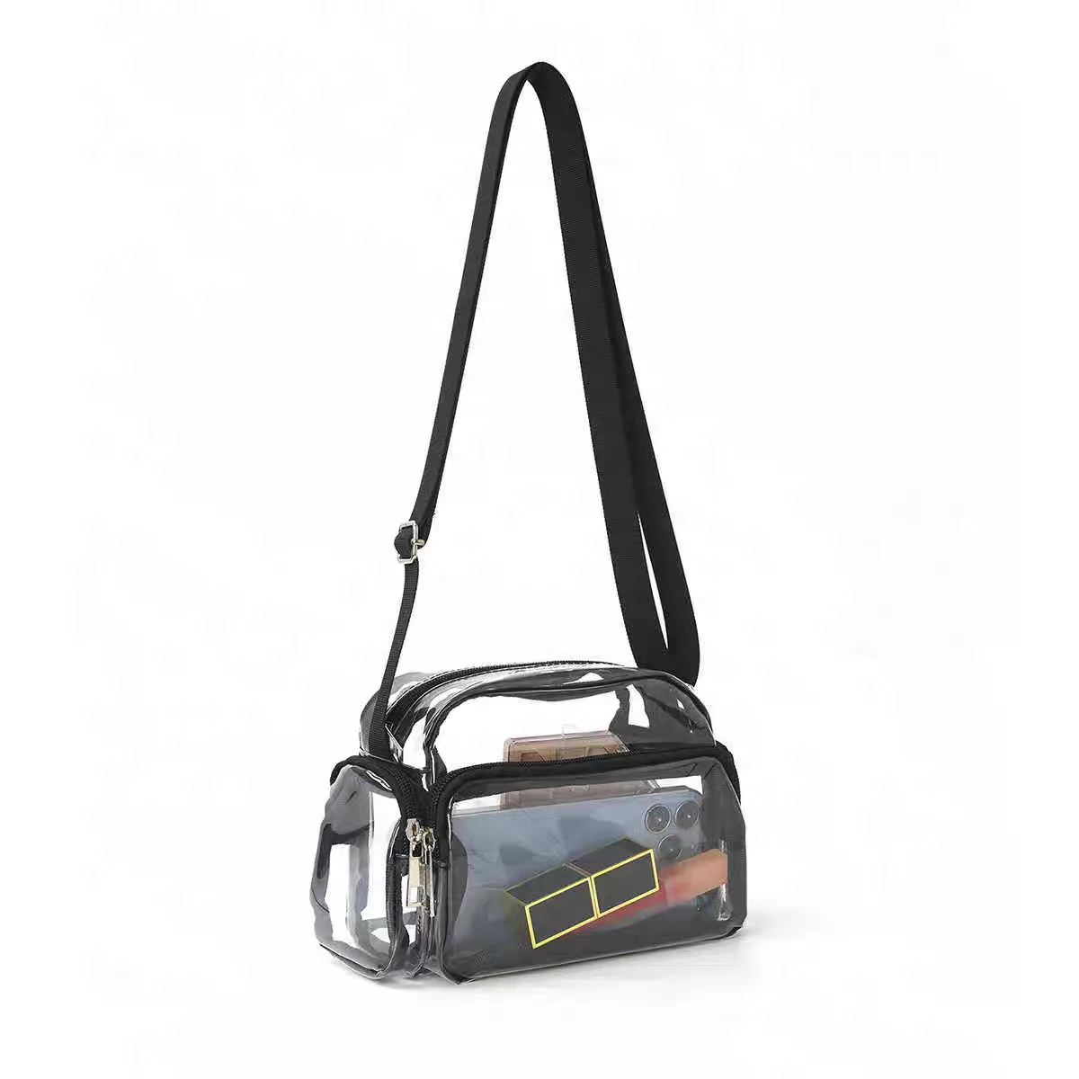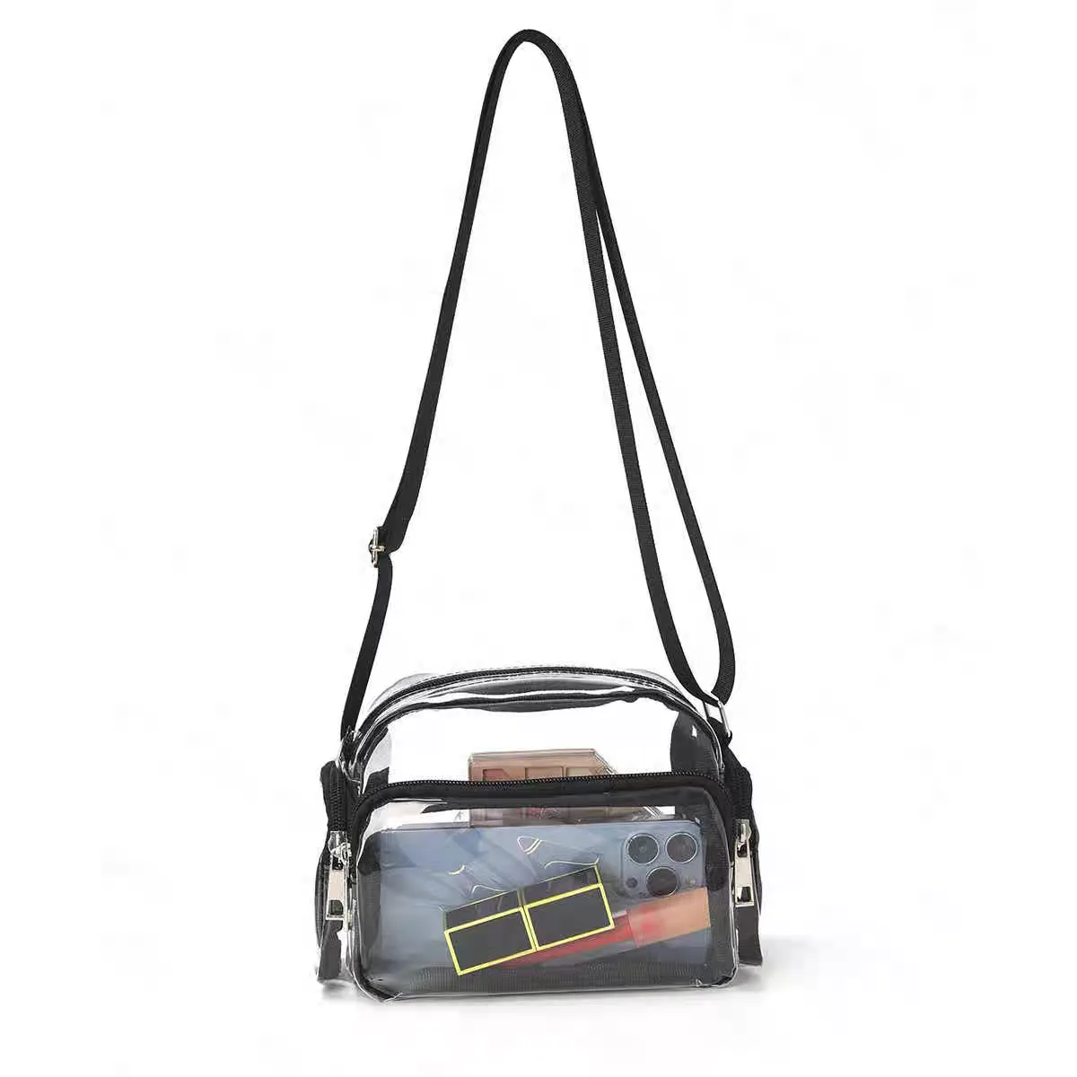 The women’s shoulder bag with code 3363, featuring a modern design and made from transparent PVC, is a practical and unique choice for everyday use. The adjustable shoulder strap enhances carrying comfort and allows use for individuals of different heights. This bag, with its transparent appearance, enables you to quickly find your essentials while maintaining a distinct and minimal style.