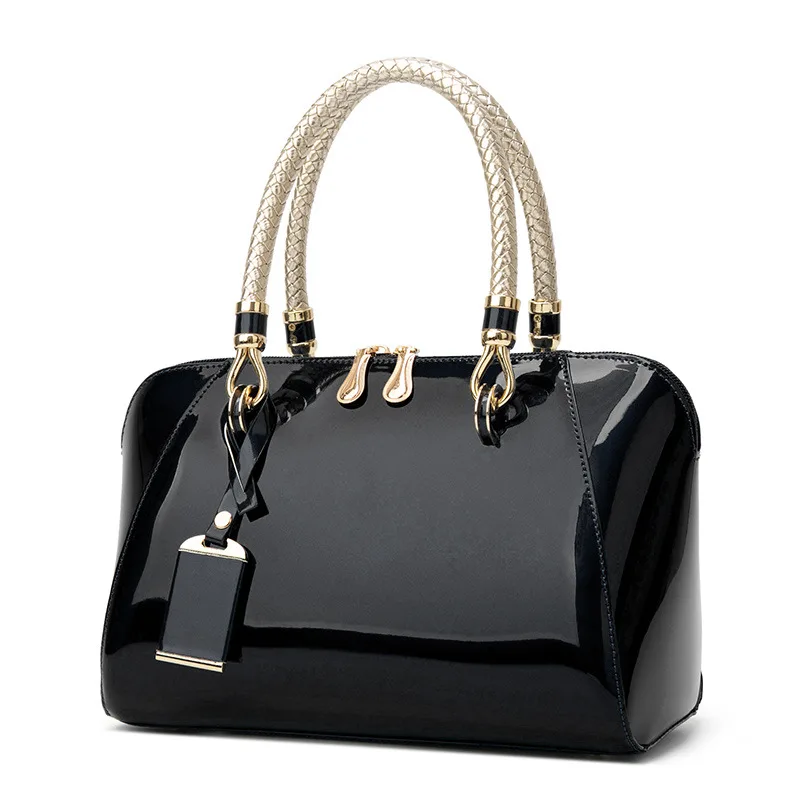 Women’s hand-held Vernis bag, code 3389, features a shiny and unique design, available in vibrant colors such as pink, lilac, and sky blue, adding a luxurious touch to your style. Its handle is adorned with an elegant golden strip, enhancing its beauty and elegance. The bag is made of high-quality Vernis material that is resistant to scratches, ensuring both shine and durability. Its medium size makes it perfectly suitable for daily use or semi-formal gatherings. It can be beautifully paired with light-colored mantles, women’s suits, or minimalistic summer styles.